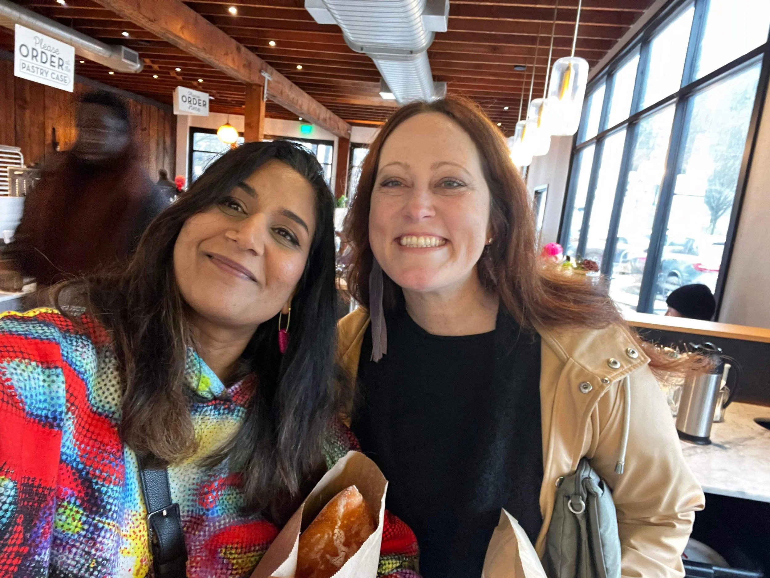 Megan Donahue & Devi Brunsch are the power duo behind this beautiful mural. The two women first met as co-workers in the Microsoft Windows Phone Design team in the late Oughts, then rekindled their friendship in the spring of 2024. Expand to learn more about each of them.